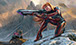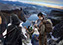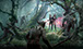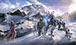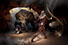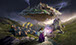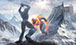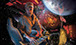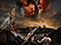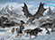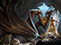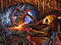 Most of the background environment was painted using customized brushes in Photoshop, and this was composited with portions of photographs I had taken myself for the sky and the cliff wall. I had recently been to New Mexico with my wife and had photographed rock formations from the Sandia Heights tram ride. They came in very handy for constructing parts of the cliff wall.