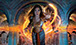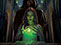 Liliah Richcreek, a talented actress in Los Angeles, modeled for it.  For the photoshoot I placed a small household light bulb in front of her and wrapped it with green transparent filters to create the effect of the surreal magical glowing light.  The photo of the model was then completely “painted” over using the smudge tool to give it a painterly effect. Most of the remaining illustration involved using Photoshop brushes – including the glowing ball of energy between her hands and the shadowy figure of the Necromancer behind her.  The background cathedral was painted using a stock photo for reference.