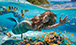 The coloration for the creature I took from nature itself. I used the striking colors of a Leopard Chameleon to paint the coloration on the head and neck of the creature.  To add the scales on the head, I created a high contrast outline of a diamond pattern and overlaid it to the head. I then used the warping tools in Photoshop to warp the scale pattern and wrap it to the contours of the head.  This was a very fun project, and took only a few days to complete. BUY PRINT
