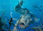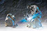 Two models were photographed for the main characters: I set up a studio lighting arrangement that would simulate the lighting in the painted scene. The lamps were bounced off the ceiling to get a diffused effect similar to the shaded area beneath the falls. I did not have a male model available, so I photographed myself and then altered the photo to give it a more athletic physique.