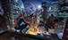 For many years one of Brad’s favorite comic book characters has been Spiderman, especially after seeing the 2002 movie starring Tobey Maguire. Brad says “I could really relate to the trials and tribulations that Peter Parker went through while he was growing up. I had a lot of the same things happen to me during my school years (except the spider super powers).  Peter was also a photographer, which I thought was pretty cool!”  In early 2017 Brad decided to do his own personal depiction of the famous superhero. Brad located an excellent body builder to do the modeling for the photoshoot. Brad photographed the model wearing a simple pair of black, speedo shorts. The model was lit with a harsh, blue gelled light to simulate moonlight, and with a red colored fill light to simulate the warm, incandescent light from the building behind the character. The skin tones were then carefully selected and colorized to produce the vivid red and blue portions of the costume. The silver, web pattern was carefully painted over the shoulders, arms and boots, paying careful attention to the curvature of the muscles. Brad also applied a very fine, scale-like pattern to the blue portions of the suit. Finally, the rooftop, and water puddles were painted by hand, and a rough, pebble texture was applied to the surface texture to the roof. The cityscape background was created through the aid of a photo of downtown Manhattan, which was digitally repainted and recolored.