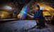 I did two complete paintings: one of the ornamental metallic frame, and the other an entire landscape scene which depicts an airship from the book and a 9 foot mechanical man.e robot. I then used the photo as a lighting reference and painted directly over it to create the robot.  As I progressed, I split the body at the joints, and then painted mechanical parts into the vacant openings.